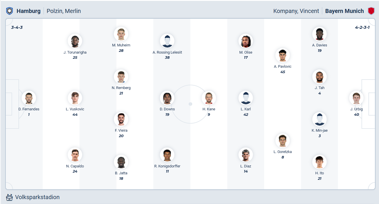 Hamburg trở lại với Bundesliga mùa này sau khoảng thời gian chơi ở giải đấu hạng dưới. Với chất lượng đội hình không cao thì đội bóng của HLV Merlin Polzin chỉ đặt mục trụ hạng lên đầu. Việc đứng thứ 14 ở thời điểm này của mùa giải không phải thành tích tệ nhưng phong độ của các cầu thủ Hamburg thời gian gần đây không tốt khi họ không thắng trong 5 vòng gần nhất. Để sớm đủ điểm trụ hạng thì họ cần một kết quả tích cực ở vòng đấu thứ 20 này, nhưng đối thủ Bayern quá mạnh nên nhiều khả năng Hamburg sẽ phải nhận thêm một trận thua nữa.